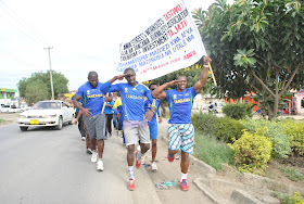 | Msafara huu ulichombezwa na hamasa kwa wananchi kujitokeza kufanya mazoezi wka kupiga Push Up barabarani |